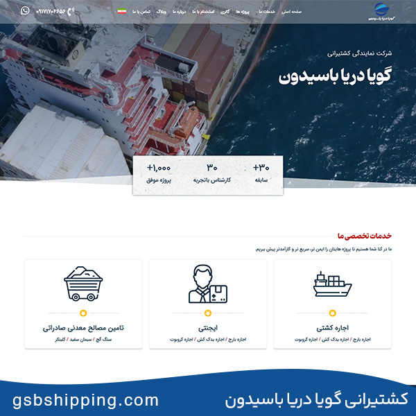 نمایش بزرگ بازرگانی شرکتی کشتیرانی نمونه کار طراحی سایت نمونه کار طراحی سایت شرکت کشتیرانی دریارخش مشدانی